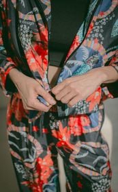 • Campera confeccionada en siré, ideal para lucir con estilo en cualquier ocasión. Campera corta forrada con cierre delantero, perfecta para combinar con un pantalón babucha o un short con aberturas laterales. La estampa exclusiva de África design le da un toque único y moderno a tu look.