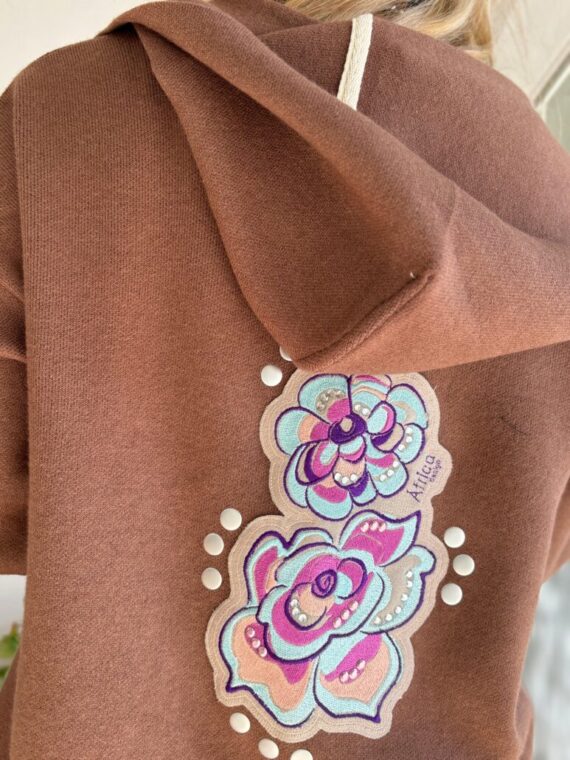 • Saco Petunia chocolate diseñado exclusivamente por África Design, es la prenda perfecta para quienes buscan un estilo único y moderno. Su diseño se destaca por aplicación bordada y tachas, que añaden un toque especial a cualquier outfit. Ideal para combinar con diferentes estilos, ya sea para un look casual o más elegante. Su confección de alta calidad garantiza comodidad y durabilidad, convirtiéndolo en un infaltable en tu guardarropa.